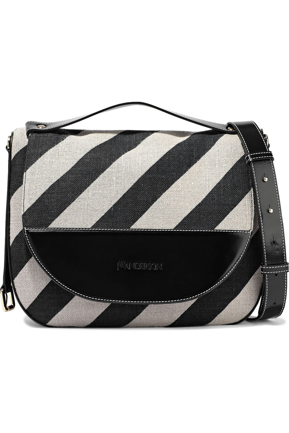 J.W.ANDERSON J.w.anderson Woman Moon Large Striped Canvas Glossed-leather And Suede Shoulder Bag Black Size -- 6 14 29900 В магазин